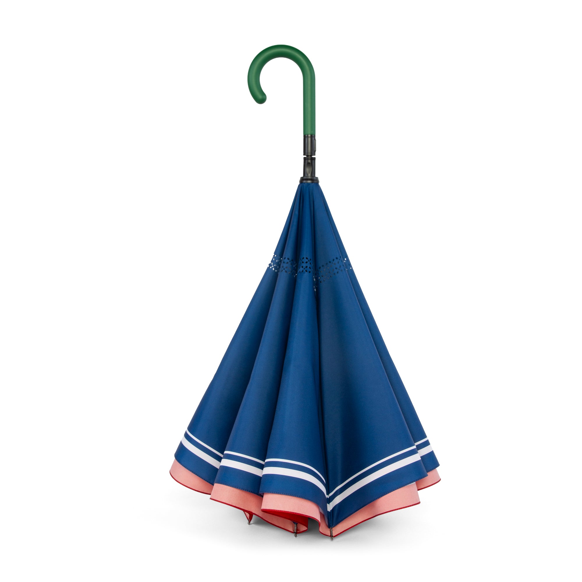 Meet the umbrella that’s as smart as it is stylish. Our inverted umbrella design keeps you dry during the dreaded post-storm entry (good bye wet mess!), while the automatic close feature makes packing up effortless. It comes tucked inside a quick-dry, two-layer carrying bag—because soggy isn’t our style. Crafted from Brella’s signature coated fabric, it’s waterproof umbrella fabric, quick-dry and UV-resistant umbrella ready for those unpredictable sun-then-storm days. With wind ventilation engineered to withstand gusts up to 60 mph and anti-flip technology built into its double-layer, 8-panel canopy, this windproof umbrella isn’t just built for weather—it’s built for whatever. Designed for everyday super-storms, for sun, rain and wind. Perfect as an “inverted car umbrella” to keep your ride dry.